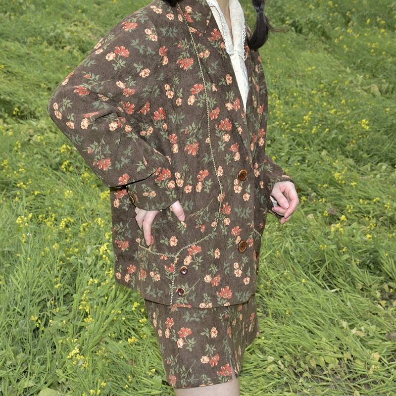 软软的露西 《纯真博物馆》复古少女碎花栗色西装外套休闲