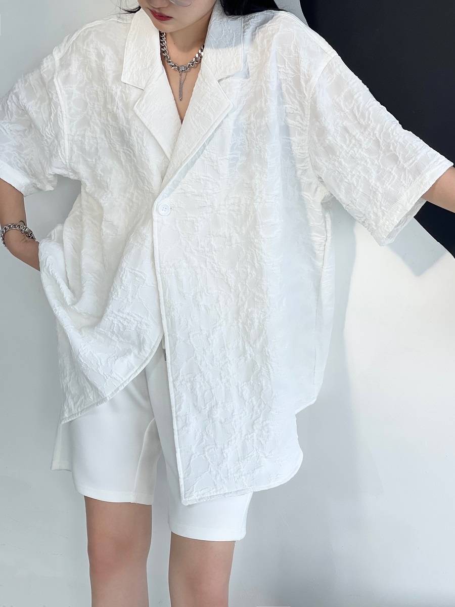THELIGHT设计高质感小众白色西装女提花衬衫宽松慵懒风2022男友风