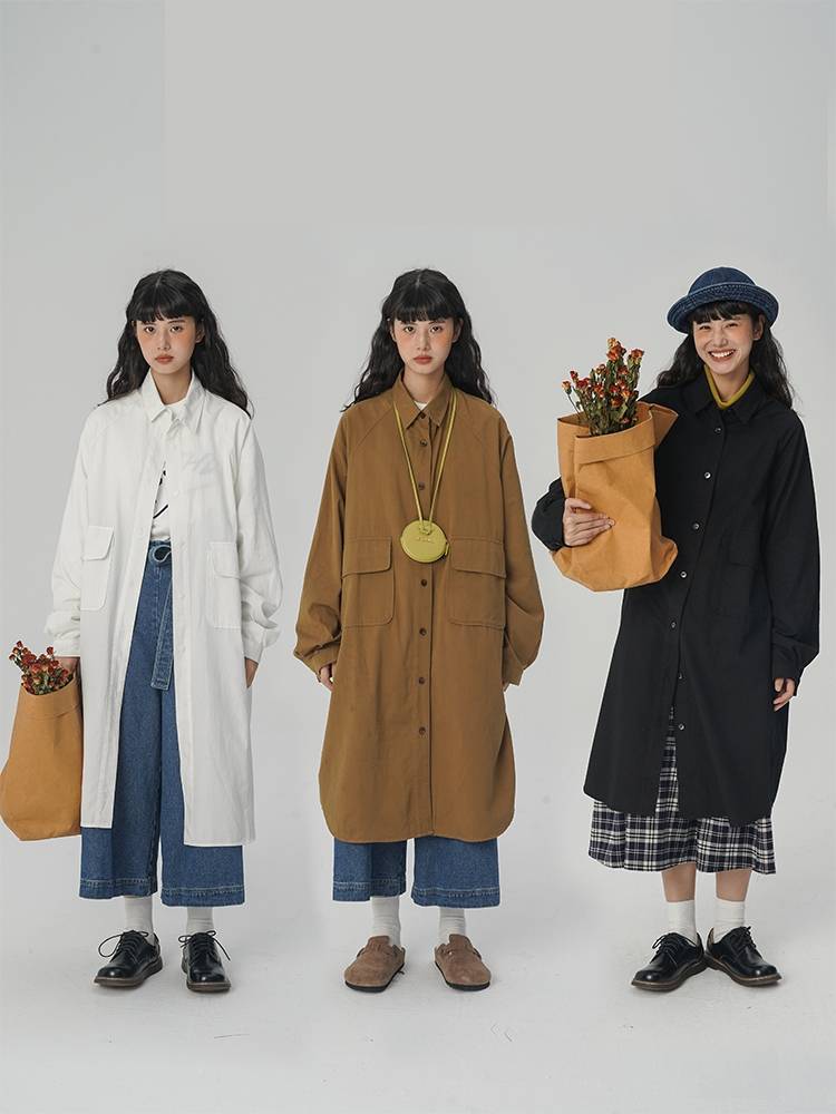 odd maker 纯色宽松长袖长款衬衫上衣女早春港风潮流薄款衬衣外套