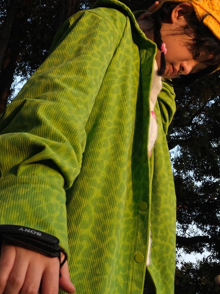 长袖衬衫绿色豹纹灯芯绒男女同款