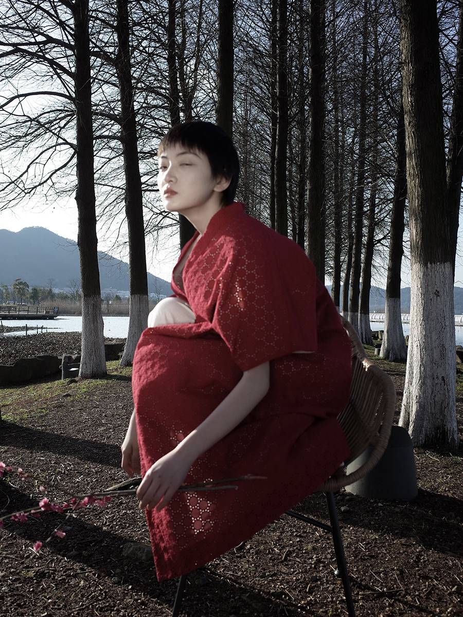 多雾地段 桃妖系列 日式复古红色衬衫开衫外套春夏款 原创设计