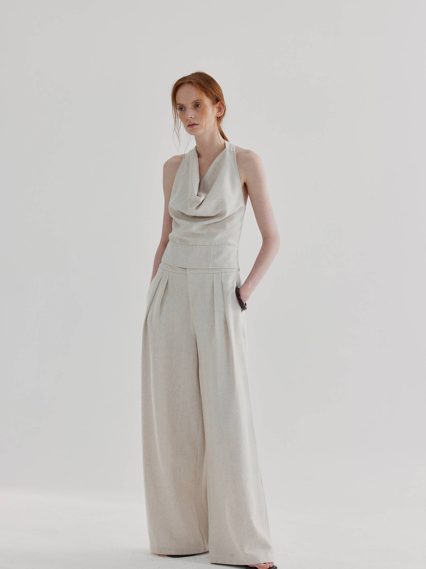 日系休闲西装亚麻阔腿裤女装春季高腰宽松 拖地裤子