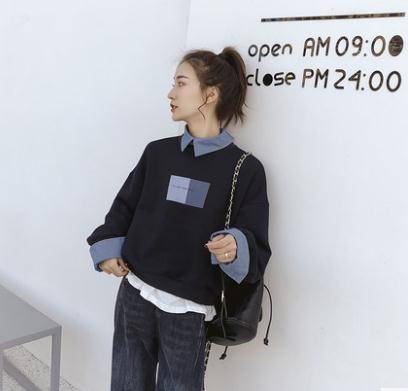 小谷粒假两件套头卫衣2019新款女春秋中长款薄款宽松韩版bf慵懒风