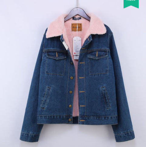 秋冬季新款粉色加绒加厚仿羊羔毛牛仔外套女韩版大学生开学季女装