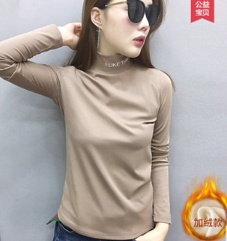 新款2019女装欧货潮长袖t恤加绒半高领打底衫女内搭上衣冬