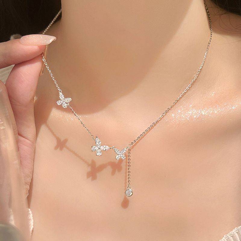 S999纯银流苏蝴蝶项链女轻奢小众百搭锁骨链情人节送女友闺蜜礼物