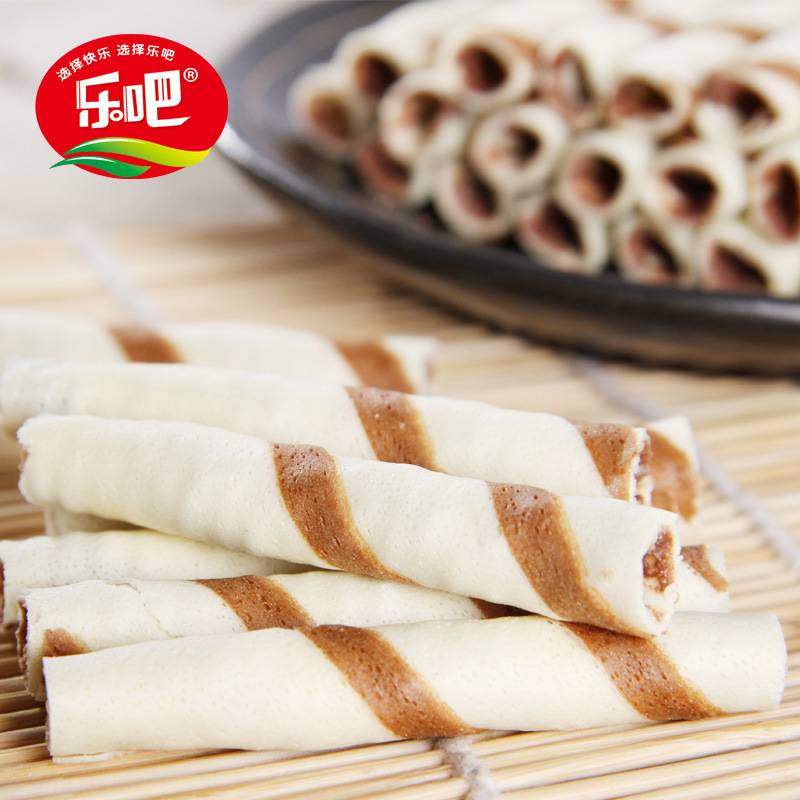 乐吧巧克力味蛋卷袋装50克早餐休闲零食天津整箱饼干点心糕点批发