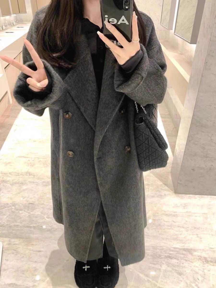 【盛宏】M家经典大衣双面羊绒大衣毛呢外套女水波纹羊绒大衣7202