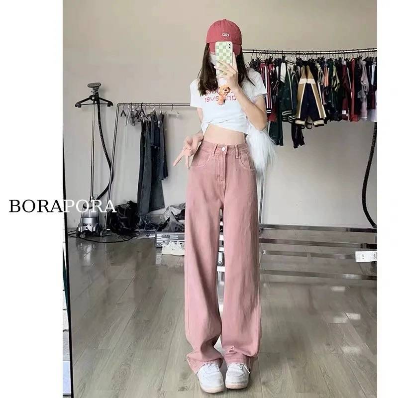 Cuties脏粉色高腰阔腿垂感直筒显瘦牛仔长裤显瘦