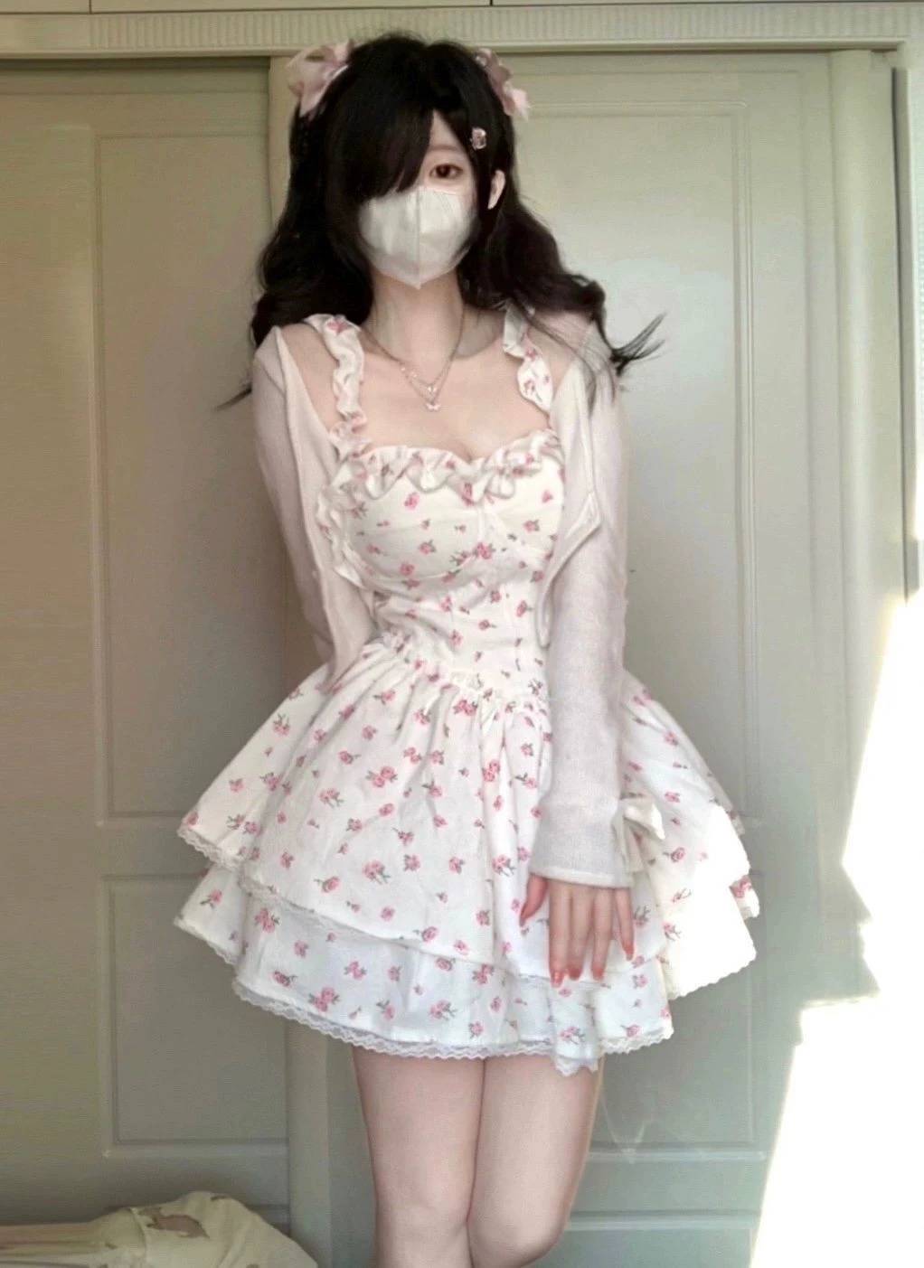 纯欲风公主蓬蓬裙吊带短裙新款碎花收腰显瘦A字连衣裙女