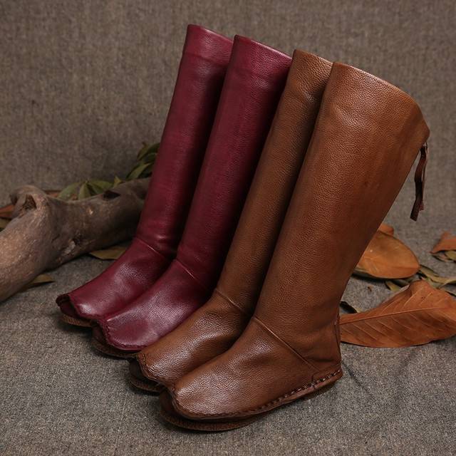 特大码女靴子2018秋新款手工鞋复古真皮长靴 头层牛皮高筒靴单靴