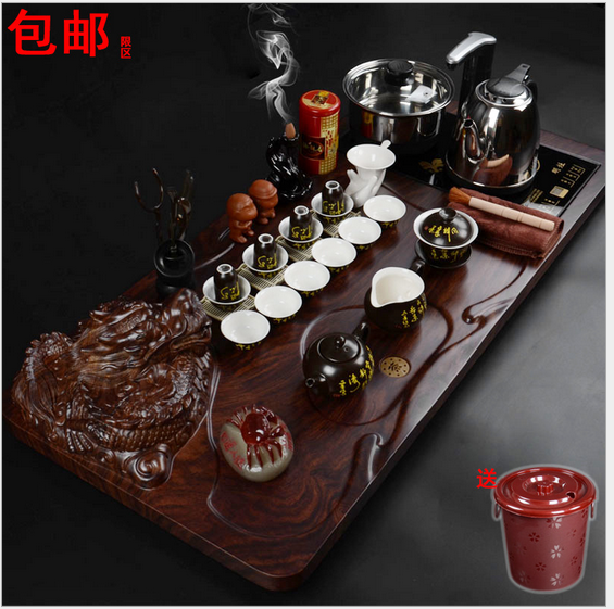 整套实木茶盘陶瓷紫砂功夫茶具电热壶四合一茶具套装