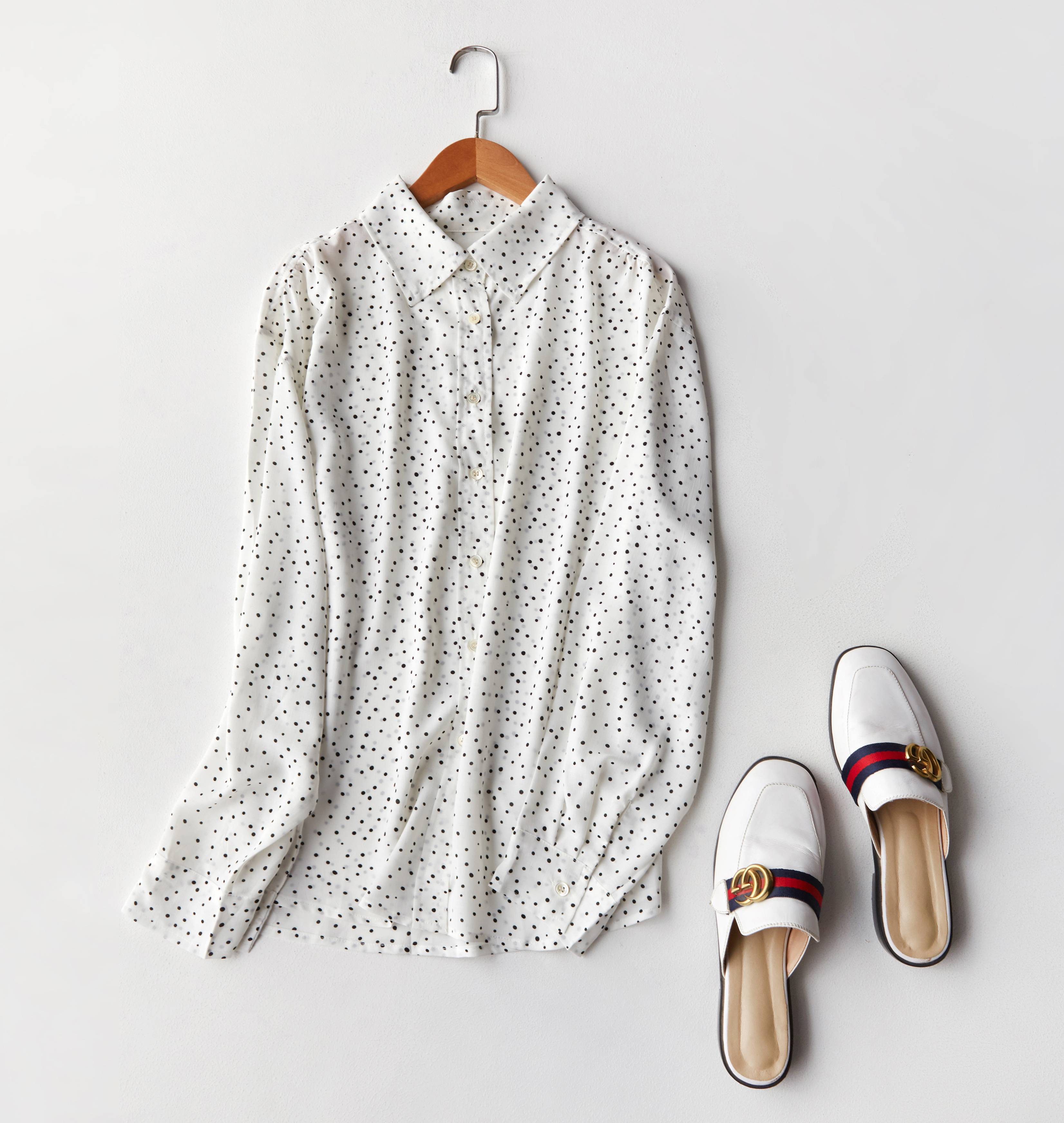 波点白衬衣2019春夏季新款韩版女装休闲百搭宽松衬衫学生打底上衣