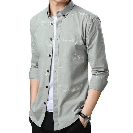 春季2019新款衬衫男士潮流韩版长袖青年印花修身衬衣打底秋装外套