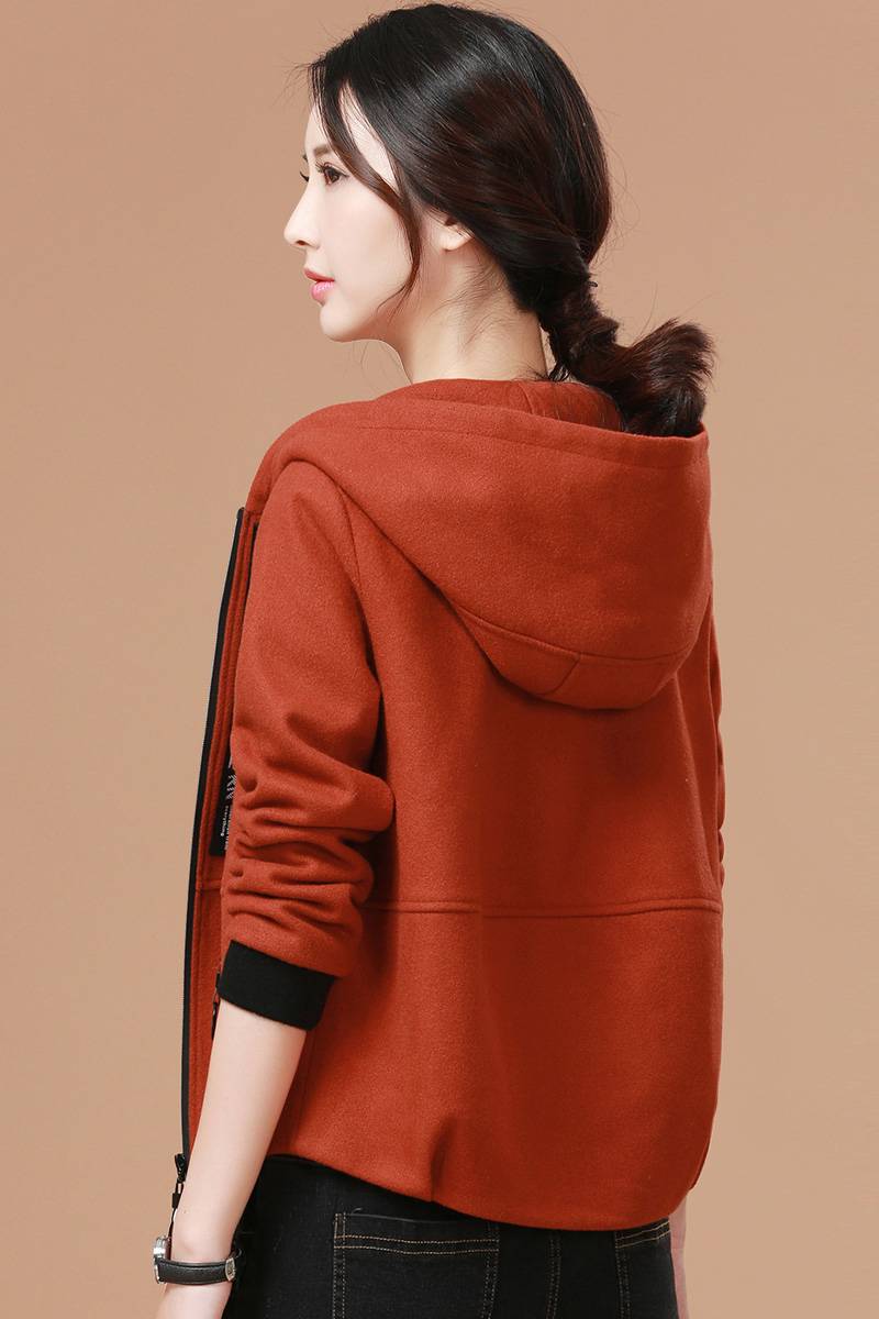 毛呢子外套女士连帽短款外衣2018新款冬天矮个子娇小妮子大衣加厚