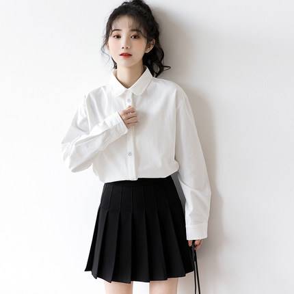 2020秋季新款学院白色衬衫女宽松韩版学生白衬衣春秋长袖polo上衣