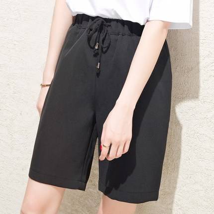 帛卡琪运动五分裤女夏宽松直筒中裤韩版学生休闲裤松紧腰黑色短裤