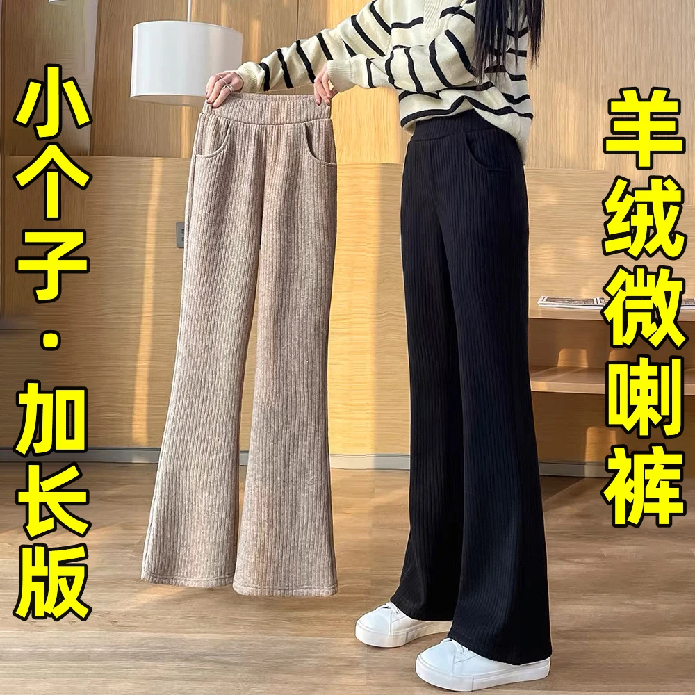 雪尼尔微喇裤子女秋冬款羊绒阔腿裤2023新款加绒加厚休闲喇叭女裤
