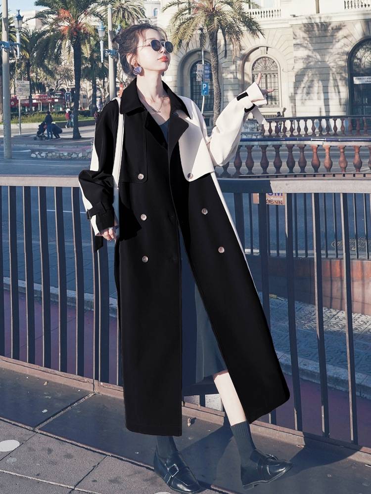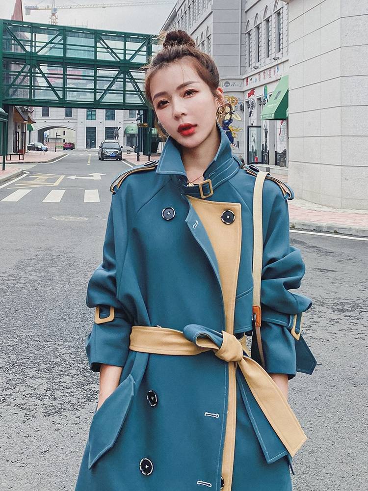 风衣2020新款中长款高端大气英伦风气质流行韩版宽松拼色大衣外套