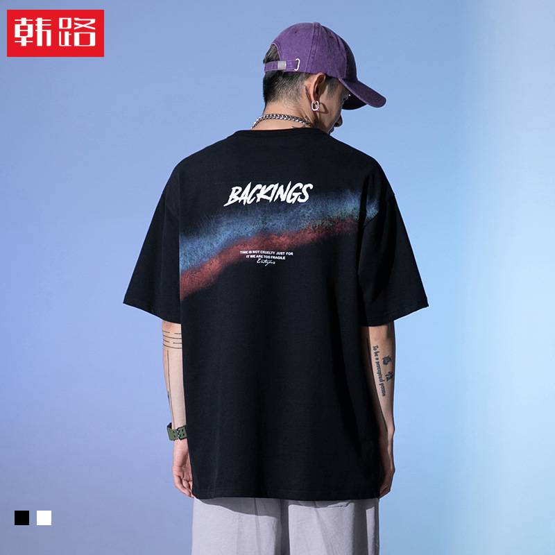 2022夏新款喷染彩虹印花短袖T恤男ins潮流男装体恤