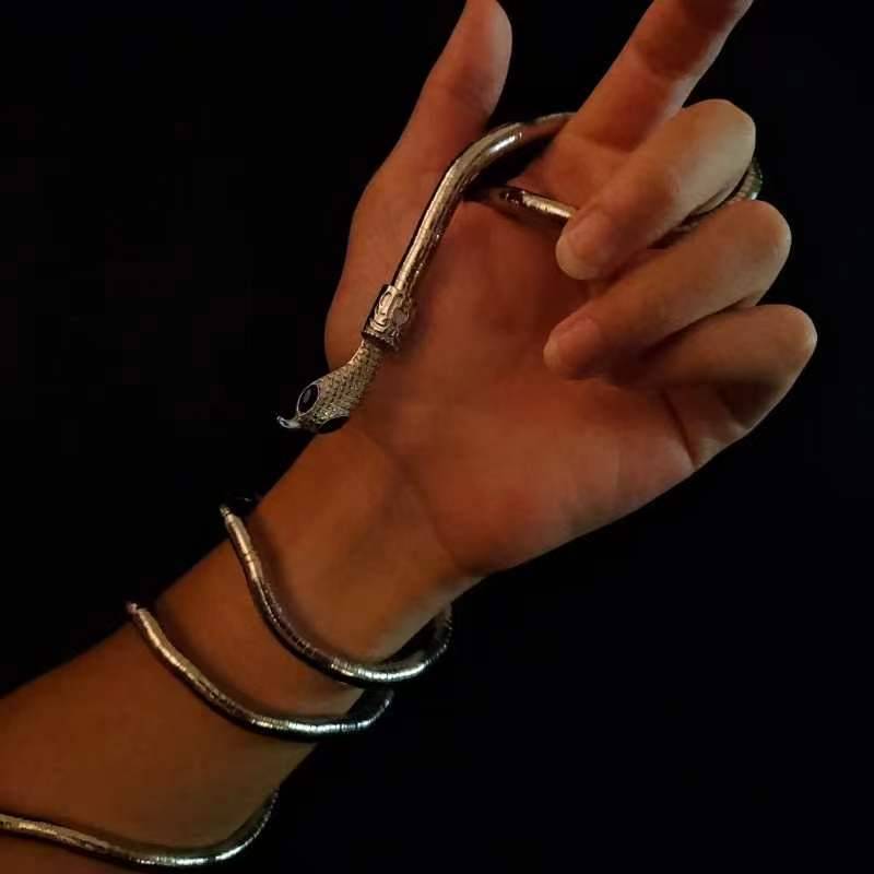 925银质感重工光面蛇手镯