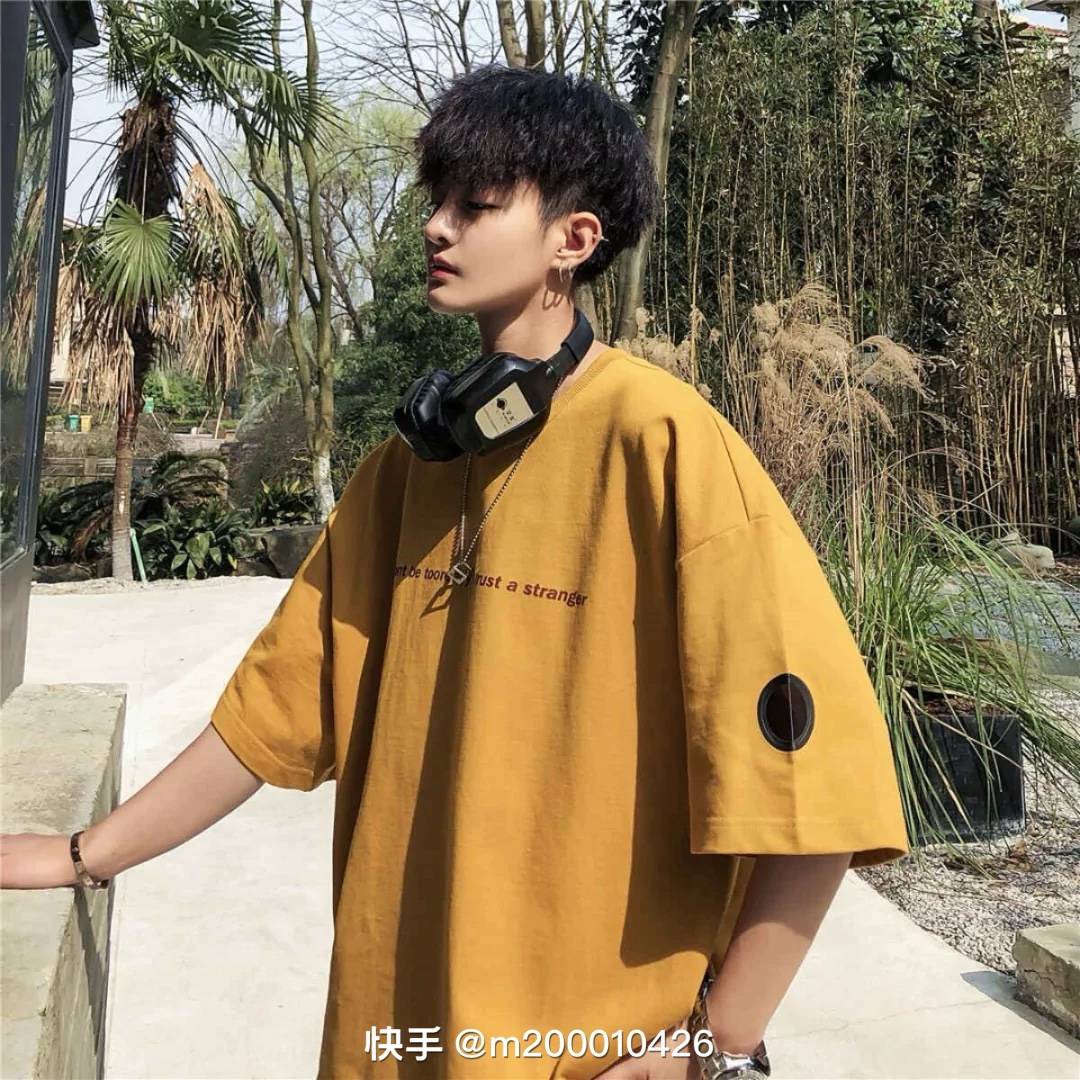 数字7暗黑系重磅t恤男款美式复古痞帅炸街纯棉短袖情侣五分半截袖