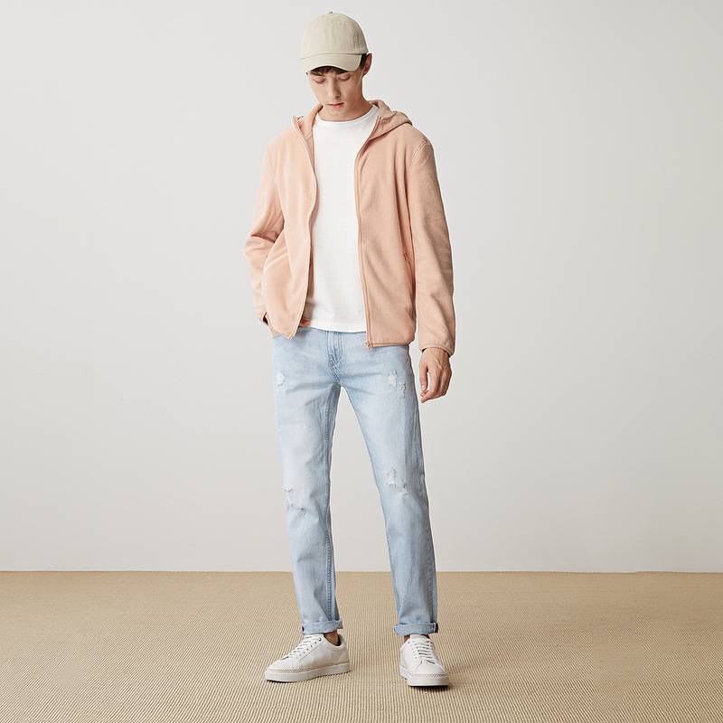 2025男装新款连帽开衫 摇粒绒卫衣男式 休闲学生纯色外套