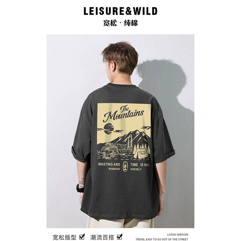 老虎竹子发泡印花短袖T恤男士打底衫潮牌情侣休闲上衣