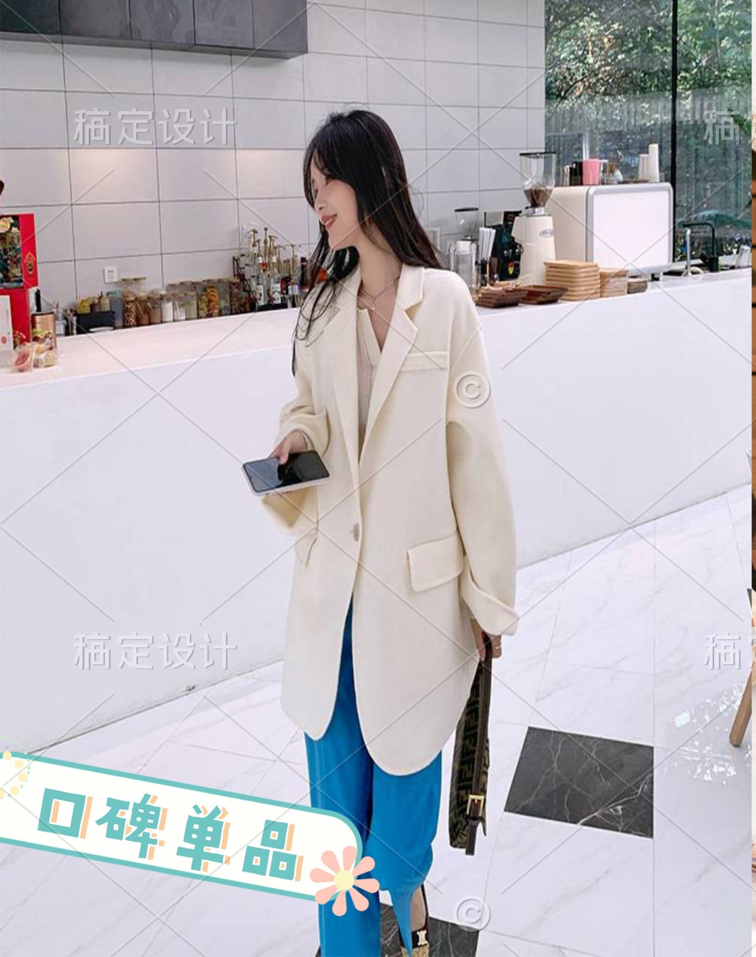 2020秋冬新款女保暖羊毛大衣色羊毛简约文艺毛呢大衣双面呢宽松潮