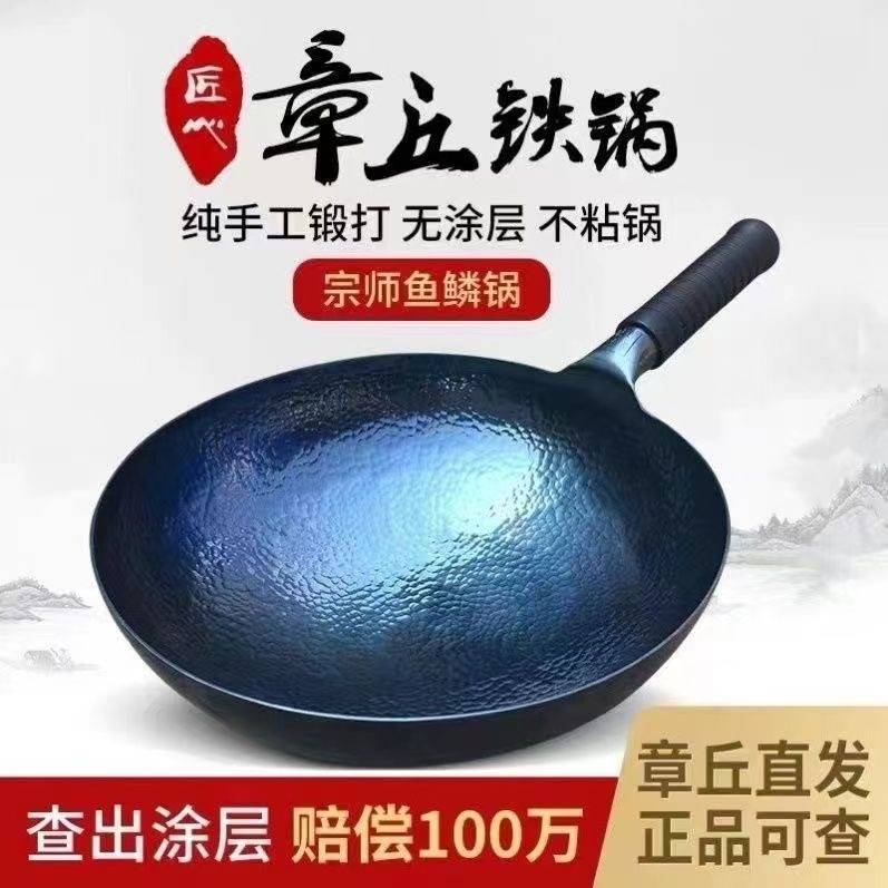 章丘铁锅家用平底炒锅电磁炉燃气灶通用家居传统老式无涂层不粘锅
