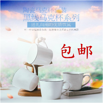 欧式黑线陶瓷水杯 广告促销马克杯子咖啡牛奶早餐杯礼品