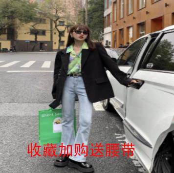 高腰显瘦牛仔喇叭裤女复古港风长裤2021年新款