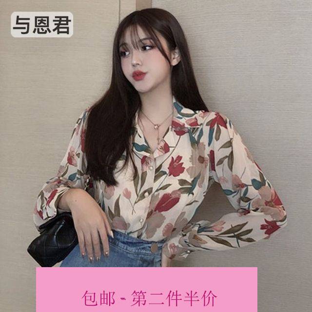 上衣女复古港风单排扣碎花雪纺衬衫女2019夏季防晒衫