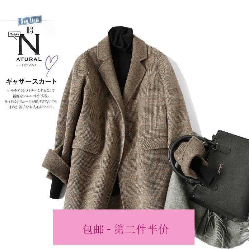 ZOJ手缝羊毛双面绒外套格子大衣女西装新款秋冬毛呢女装
