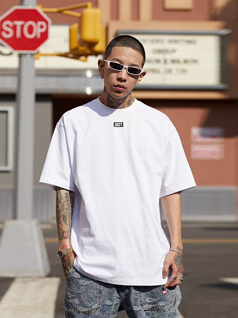 1807夏季新品基础款黑白色印花t恤纯棉宽松半袖打底圆领短袖男