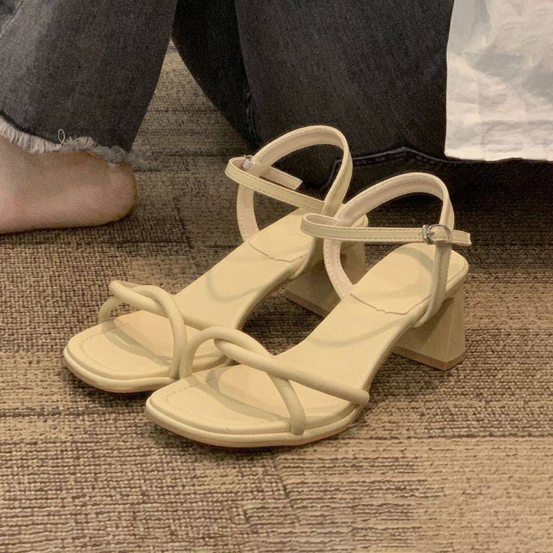 复古粗跟防滑凉鞋女2023年夏季新款时尚百搭温柔一字带高跟鞋夏天