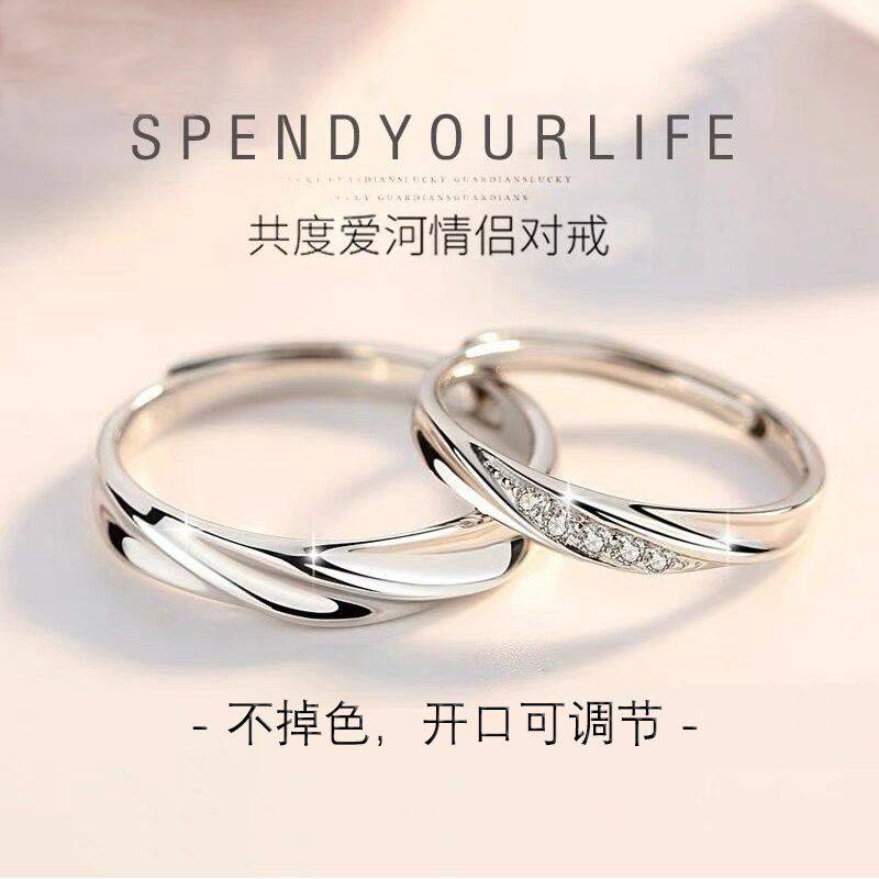 莫比乌斯环对戒情侣款小众925银戒指情侣款一对活口可调节不掉色