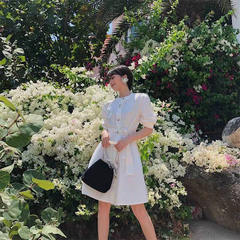 系腰带 单排扣 宽松仙女风衣 白衬衫连衣裙 2019春装