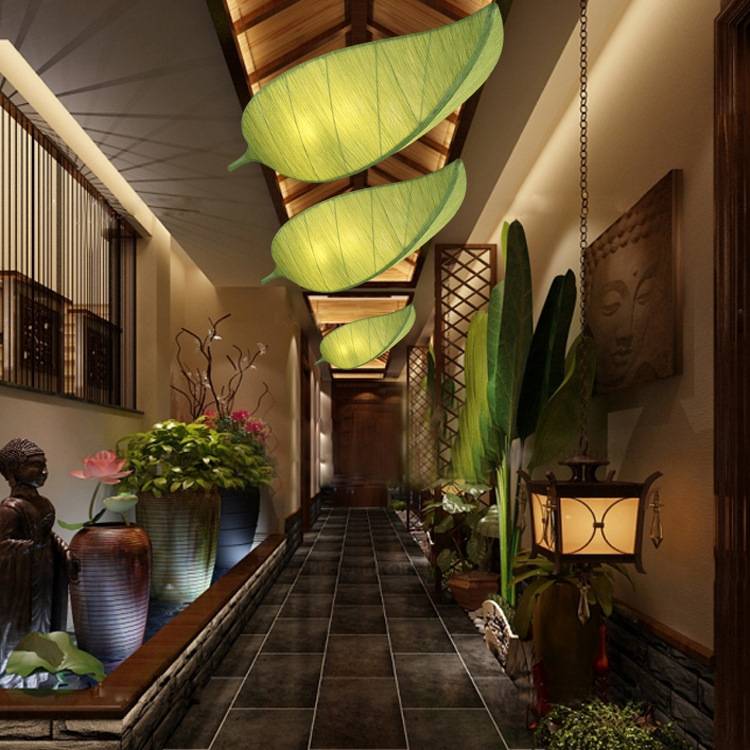 新中式树叶吊灯个性会所美容院走廊过道创意卧室吸顶叶子布艺灯具