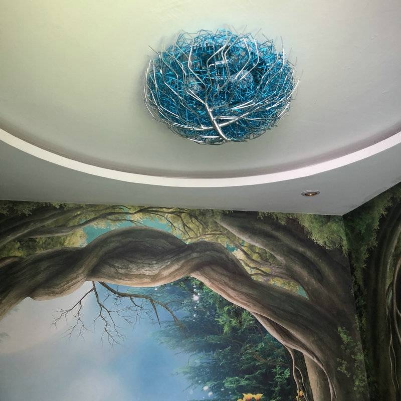 创意鸟巢吸顶灯儿童房卧室灯个性艺术灯具地中海风格灯饰温馨浪漫