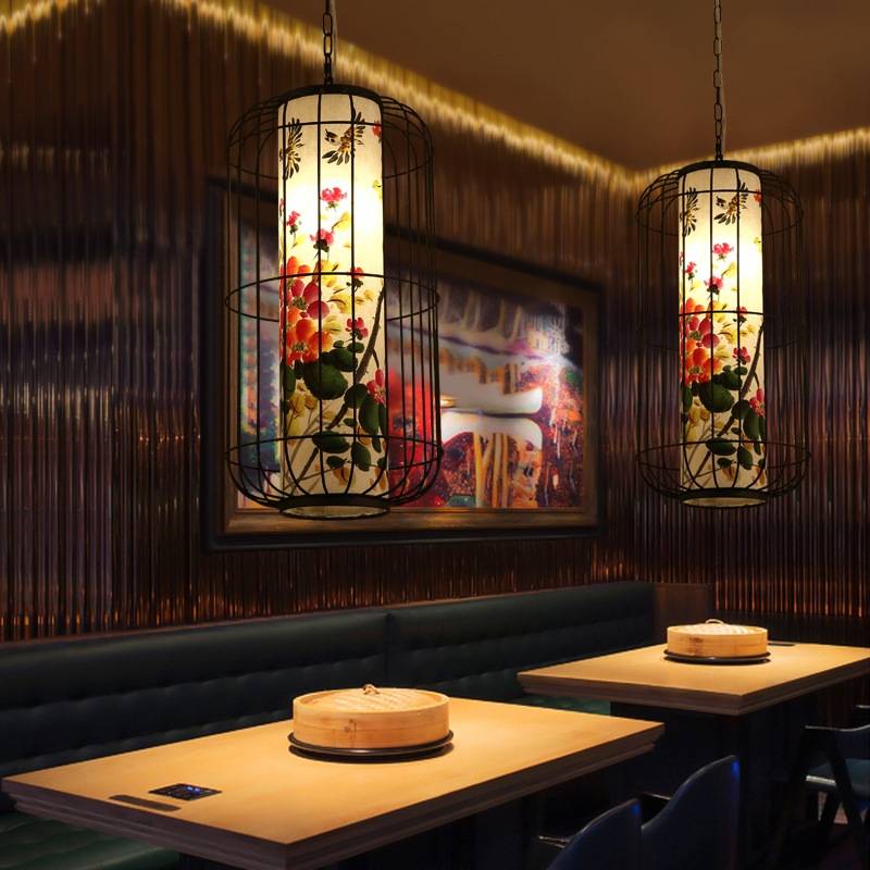 中式中国风仿古铁艺吊灯现代创意茶楼餐厅火锅店酒店工程手绘灯具
