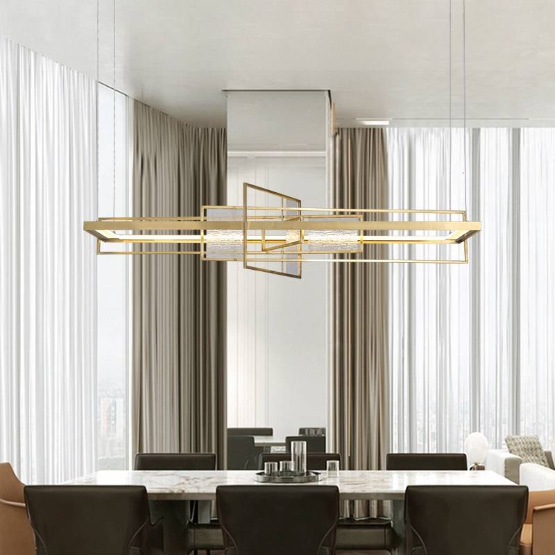 后现代个性长方形玻璃金属吊灯新中式轻奢饭厅灯网红别墅餐厅吊灯