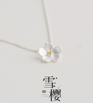 樱花纯银项链学生简约森系小清新文艺小众设计锁骨链女生闺蜜礼物