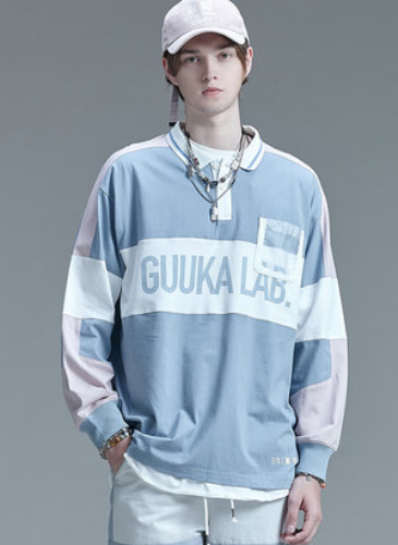 蓝粉拼接长袖polo衫男潮牌 学生嘻哈运动印花长袖打底衫宽松 1519.00 已售:0件