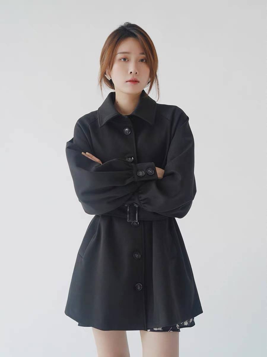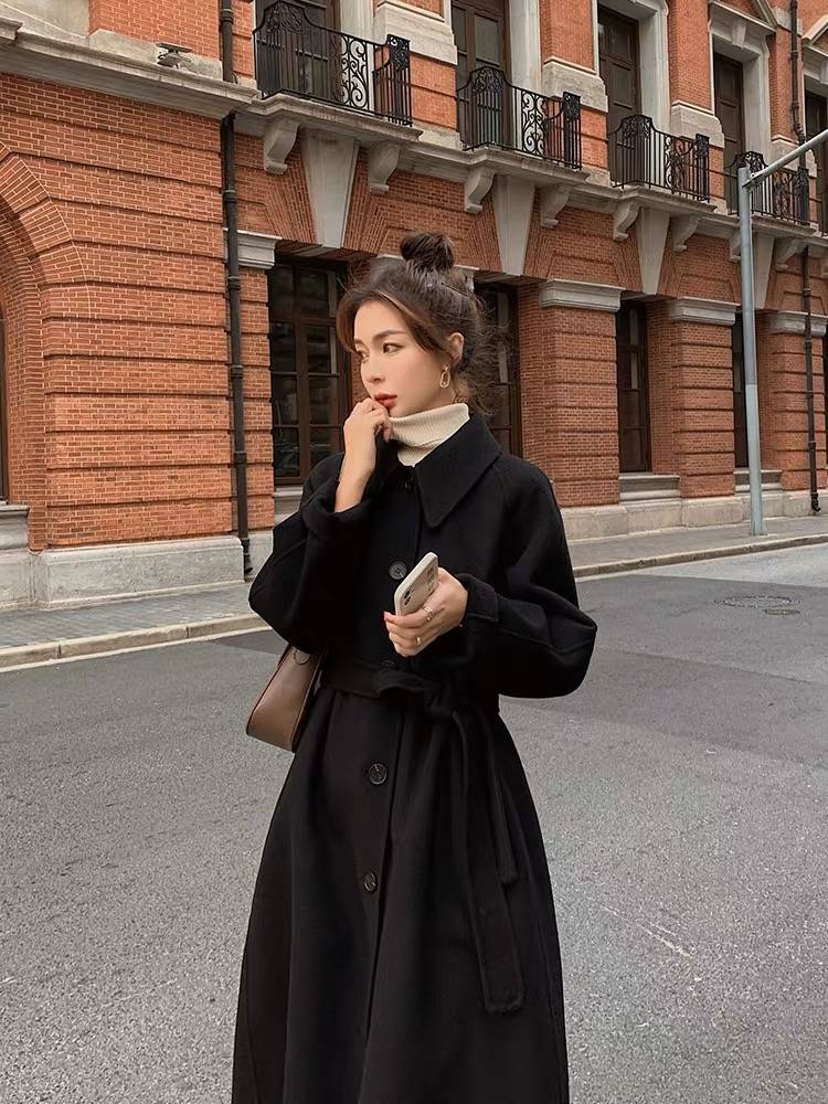 2020秋冬流行赫本风黑色大衣小个子显瘦带中长款毛呢外套加厚女