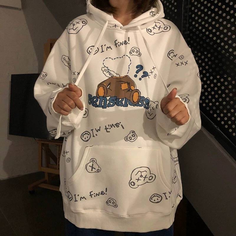 YITE无头小熊卡通加绒连帽宽松卫衣女设计感心机小众外套女ins潮