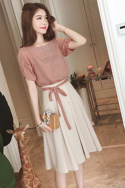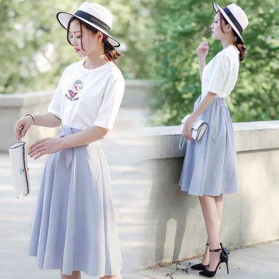 2020夏季新款女装圆领露肩荷叶袖a字裙气质淑女雪纺连衣裙