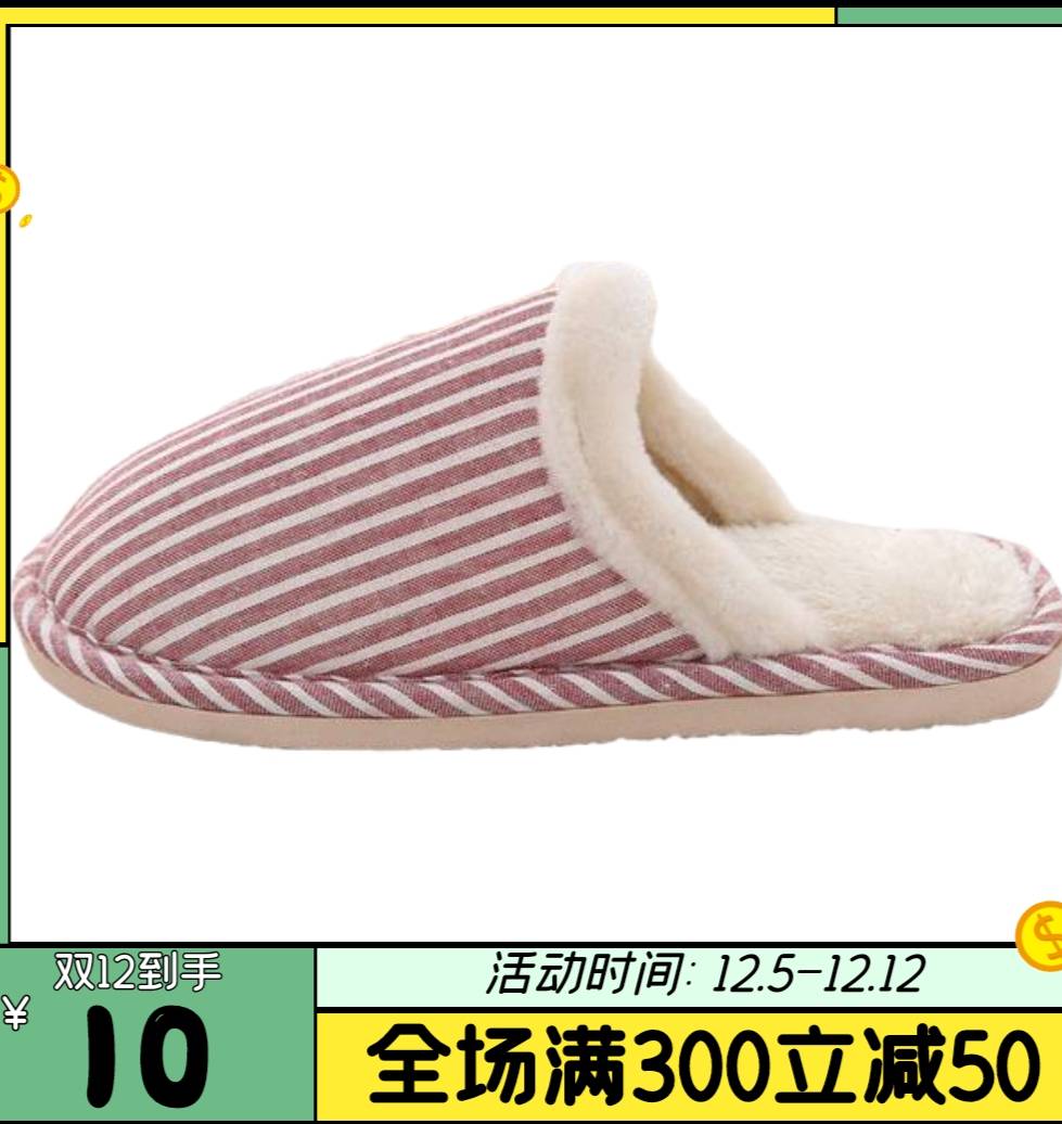 秋冬季家居棉拖鞋室内男女士情侣防滑条纹毛绒保暖加厚底地板拖鞋 13.56 已售:0件