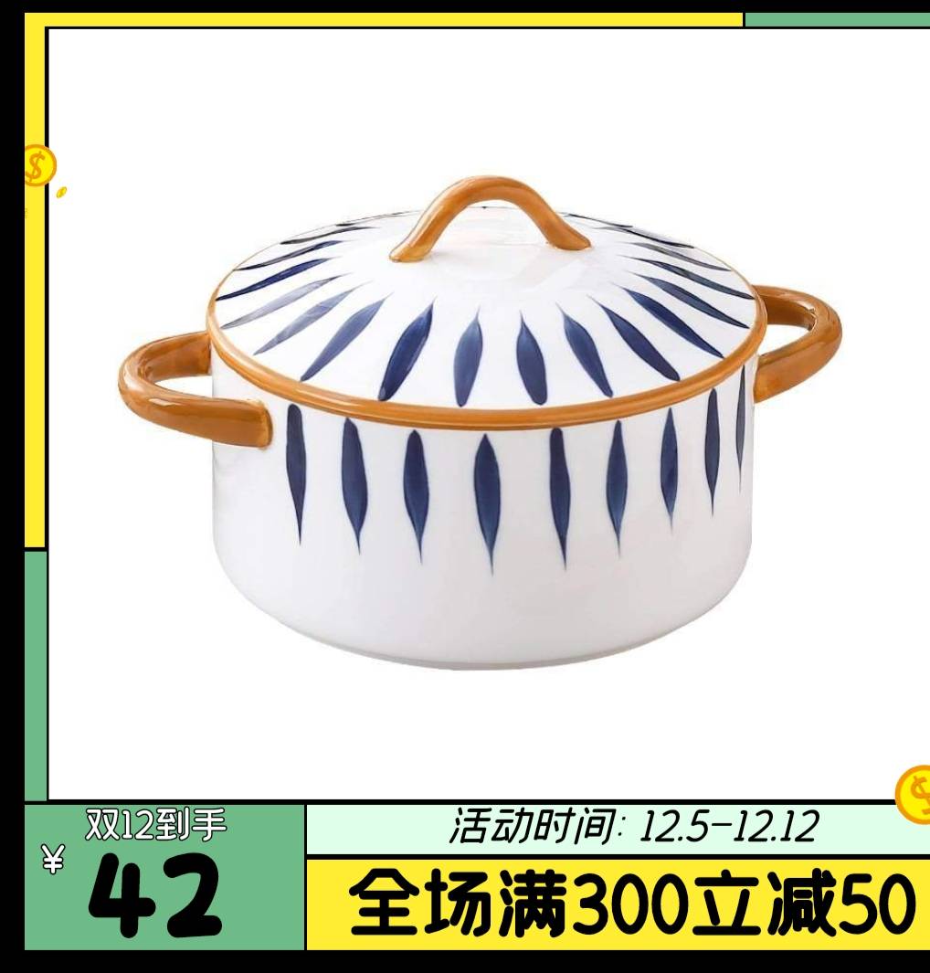 釉下彩陶瓷双耳带盖大汤碗家用北欧创意日式大碗面碗汤盆泡面碗 50.00 已售:0件