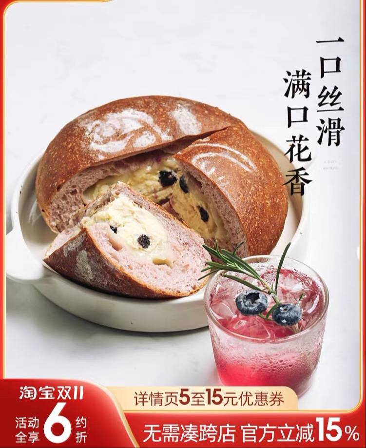 玫瑰蓝莓奶酪欧包芝士夹心手撕面包代餐早餐零食点心糕点